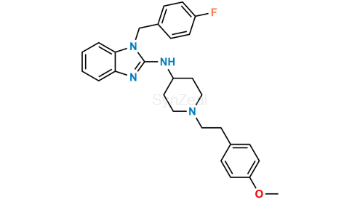 O-Desmethyl Astemizole is chemically 4-(2-(4-((1-(4-fluorobenzyl)-1H-benzo[d]imidazol-2-yl)amino)piperidin-1-yl)ethyl)phenol. O-Desmethyl Astemizole is supplied with detailed characterization data compliant with regulatory guideline. O-Desmethyl Astemizole can be used for the analytical method development, method validation (AMV), Quality Controlled (QC) application for Abbreviated New Drug Application (ANDA) or during commercial production of Astemizole.