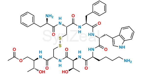Octreotide EP Impurity F is chemically O1.8-Acetyloctreotide (as per EP). It is also known as L-Threoninol(Ac)-8-Octreotide. Octreotide EP Impurity F is supplied with detailed characterization data compliant with regulatory guideline. Octreotide EP Impurity F can be used for the analytical method development, method validation (AMV), Quality Controlled (QC) application for Abbreviated New Drug Application (ANDA) or during commercial production of Octreotide.