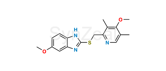 Omeprazole EP Impurity C is chemically 5-Methoxy-2-[[(4-methoxy-3,5-dimethylpyridin-2-yl)methyl]sulphanyl]-1H-benzimidazole (as per EP). It is also known as Esomeprazole EP Impurity C ; Omeprazole Sulfide ; Ufiprazole. Omeprazole EP Impurity C is supplied with detailed characterization data compliant with regulatory guideline. Omeprazole EP Impurity C can be used for the analytical method development, method validation (AMV), Quality Controlled (QC) application for Abbreviated New Drug Application (ANDA) or during commercial production of Omeprazole.