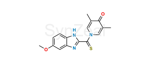 Omeprazole Impurity 48 is chemically 1-(5-Methoxy-1H-benzo[d]imidazole-2-carbonothioyl)-3,5-dimethylpyridin-4(1H)-one. Omeprazole Impurity 48 is supplied with detailed characterization data compliant with regulatory guideline. Omeprazole Impurity 48 can be used for the analytical method development, method validation (AMV), Quality Controlled (QC) application for Abbreviated New Drug Application (ANDA) or during commercial production of Omeprazole.