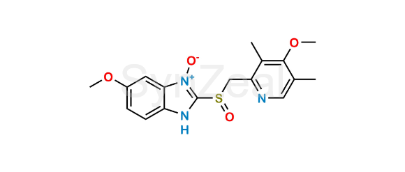 Omeprazole N-Oxide Impurity 2 is chemically 5-Methoxy-2-(((4-methoxy-3,5-dimethylpyridin-2-yl)methyl)sulfinyl)-1H-benzo[d]imidazole 3-oxide. Omeprazole N-Oxide Impurity 2 is supplied with detailed characterization data compliant with regulatory guideline. Omeprazole N-Oxide Impurity 2 can be used for the analytical method development, method validation (AMV), Quality Controlled (QC) application for Abbreviated New Drug Application (ANDA) or during commercial production of Omeprazole.