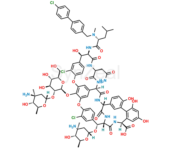 Oritavancin Impurity 2 is chemically Vancomycin, 22-O-(3-amino-2,3,6-trideoxy-3-C-methyl-α-L-arabinohexopyranosyl)-56-[(4'-chloro[1,1'-biphenyl]-4-yl)methyl]-, (4''R)- (9CI). Oritavancin Impurity 2 is supplied with detailed characterization data compliant with regulatory guideline. Oritavancin Impurity 2 can be used for the analytical method development, method validation (AMV), Quality Controlled (QC) application for Abbreviated New Drug Application (ANDA) or during commercial production of Oritavancin.
