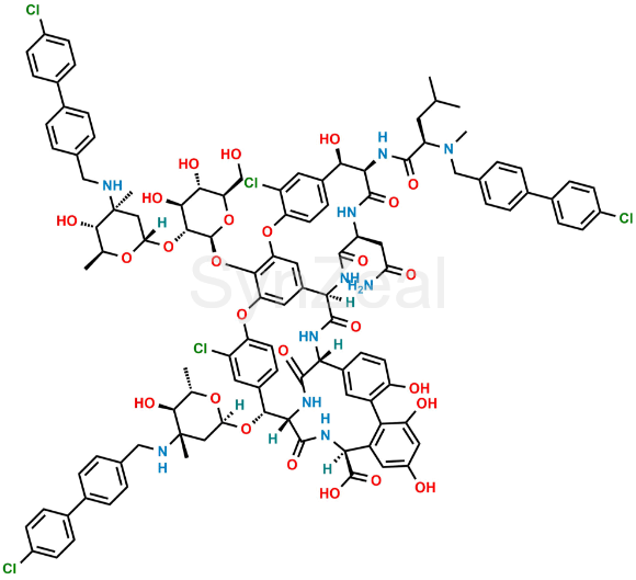 Oritavancin Impurity 6 is chemically Vancomycin, N3”, 56-bis[(4’-chloro[1,1’-biphenyl]-4-yl)methyl]-22-O-[3-[[(4’-chloro[1,1’-biphenyl]-4-yl)methyl]amino]-2,3,6-trideoxy-3-Cmethyl-α-L-arabino-hexopyranosyl]-, (4”R)- (9CI). Oritavancin Impurity 6 is supplied with detailed characterization data compliant with regulatory guideline. Oritavancin Impurity 6 can be used for the analytical method development, method validation (AMV), Quality Controlled (QC) application for Abbreviated New Drug Application (ANDA) or during commercial production of Oritavancin.