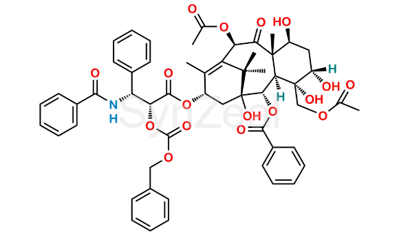 Paclitaxel Impurity 57 is chemically (1S,3S,4S,4aR,5S,6S,8S,11R,12aS)-11-acetoxy-4-(acetoxymethyl)-8-(((2R,3R)-3-benzamido-2-(((benzyloxy)carbonyl)oxy)-3-phenylpropanoyl)oxy)-1,3,4,6-tetrahydroxy-9,12a,13,13-tetramethyl-12-oxo-1,2,3,4,4a,5,6,7,8,11,12,12a-dodecahydro-6,10-methanobenzo[10]annulen-5-yl benzoate;. It is also known as 2’-Benzoylcarbonyl D-Seco-Taxol. Paclitaxel Impurity 57 is supplied with detailed characterization data compliant with regulatory guideline. Paclitaxel Impurity 57 can be used for the analytical method development, method validation (AMV), Quality Controlled (QC) application for Abbreviated New Drug Application (ANDA) or during commercial production of Paclitaxel.