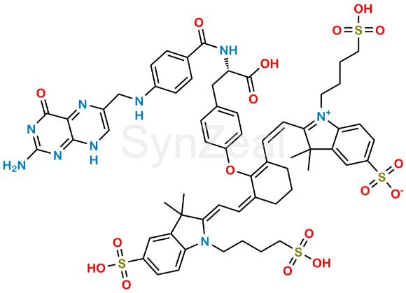 Pafolacianine is chemically (S)-2-(2-(2-(4-(2-(4-(((2-amino-4-oxo-4,8-dihydropteridin-6-yl)methyl)amino)benzamido)-2-carboxyethyl)phenoxy)-3-(2-(3,3-dimethyl-5-sulfo-1-(4-sulfobutyl)indolin-2-ylidene)ethylidene)cyclohex-1-en-1-yl)vinyl)-3,3-dimethyl-1-(4-sulfobutyl)-3H-indol-1-ium-5-sulfonate. Pafolacianine is supplied with detailed characterization data compliant with regulatory guideline. Pafolacianine can be used for the analytical method development, method validation (AMV), Quality Controlled (QC) application for Abbreviated New Drug Application (ANDA) or during commercial production of Pafolacianine.