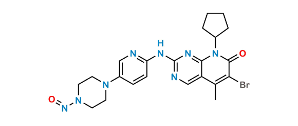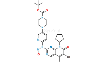 Palbociclib Nitroso Impurity 13 is chemically 6-Bromo-8-cyclopentyl-5-methyl-2-((5-(4-nitrosopiperazin-1-yl)pyridin-2-yl)amino)pyrido[2,3-d]pyrimidin-7(8H)-one. Palbociclib Nitroso Impurity 13 is supplied with detailed characterization data compliant with regulatory guideline. Palbociclib Nitroso Impurity 13 can be used for the analytical method development, method validation (AMV), Quality Controlled (QC) application for Abbreviated New Drug Application (ANDA) or during commercial production of Palbociclib.