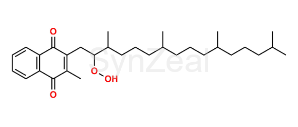 Phytonadione Impurity 3 is chemically 2-(2-hydroperoxy-3,7,11,15-tetramethylhexadecyl)-3-methylnaphthalene-1,4-dione. Phytonadione Impurity 3 is supplied with detailed characterization data compliant with regulatory guideline. Phytonadione Impurity 3 can be used for the analytical method development, method validation (AMV), Quality Controlled (QC) application for Abbreviated New Drug Application (ANDA) or during commercial production of Phytonadione.