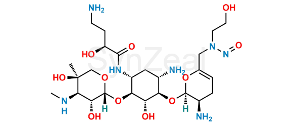 化学名称: (S)-4-amino-N-((1R,2S,3S,4R,5S)-5-amino-4-(((2S,3R)-3-amino-6-(((2-hydroxyethyl)(nitroso)amino)methyl)-3,4-dihydro-2H-pyran-2-yl)oxy)-2-(((2R,3R,4R,5R)-3,5-dihydroxy-5-methyl-4-(methylamino)tetrahydro-2H-pyran-2-yl)oxy)-3-hydroxycyclohexyl)-2-hydroxybutanamide
