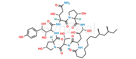 化学名称: (3S)-(4R,5R)-N2-[(10R,12S)-10,12-Dimethyl-1-oxotetradecyl]- 4,5-dihydroxy-L-ornithyl-L-threonyl-(4R)-4-hydroxy-L-prolyl-(4S)-4-hydroxy-4-(4-hydroxyphenyl)-L-threonyl-(3R)-3-hydroxy-L-glutaminyl-3-hydroxy-L-proline (6→1)-Lactam