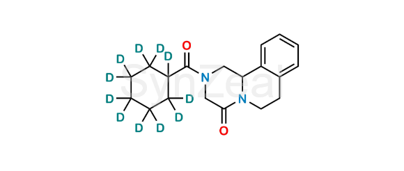 Praziquantel D11 is chemically 2-(cyclohexane-1-carbonyl-1,2,2,3,3,4,4,5,5,6,6-d11)-1,2,3,6,7,11b-hexahydro-4H-pyrazino[2,1-a]isoquinolin-4-one. Praziquantel D11 is supplied with detailed characterization data compliant with regulatory guideline. Praziquantel D11 can be used for the analytical method development, method validation (AMV), Quality Controlled (QC) application for Abbreviated New Drug Application (ANDA) or during commercial production of Praziquantel.