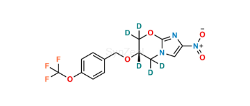Pretomanid-D5 is chemically (S)-2-nitro-6-((4-(trifluoromethoxy)benzyl)oxy)-6,7-dihydro-5H-imidazo[2,1-b][1,3]oxazine-5,5,6,7,7-d5. Pretomanid-D5 is supplied with detailed characterization data compliant with regulatory guideline. Pretomanid-D5 can be used for the analytical method development, method validation (AMV), Quality Controlled (QC) application for Abbreviated New Drug Application (ANDA) or during commercial production of Pretomanid.
