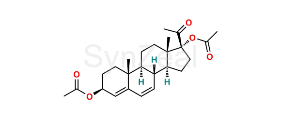 Progesterone Impurity 6 is chemically Pregna-4,6-dien-20-one, 3,17-bis(acetyloxy)-, (3β)- (9CI); Pregna-4,6-dien-20-one, 3β,17-dihydroxy-, diacetate (7CI);. Progesterone Impurity 6 is supplied with detailed characterization data compliant with regulatory guideline. Progesterone Impurity 6 can be used for the analytical method development, method validation (AMV), Quality Controlled (QC) application for Abbreviated New Drug Application (ANDA) or during commercial production of Progesterone.