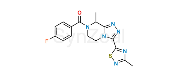 Racemic Fezolinetant is chemically (4-Fluorophenyl)(8-methyl-3-(3-methyl-1,2,4-thiadiazol-5-yl)-5,6-dihydro-[1,2,4]triazolo[4,3-a]pyrazin-7(8H)-yl)methanone. Racemic Fezolinetant is supplied with detailed characterization data compliant with regulatory guideline. Racemic Fezolinetant can be used for the analytical method development, method validation (AMV), Quality Controlled (QC) application for Abbreviated New Drug Application (ANDA) or during commercial production of Fezolinetant.
