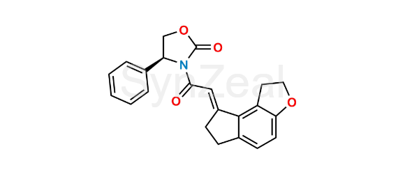 Ramelteon Double Bond Amide Impurity is chemically (S,E)-4-phenyl-3-(2-(1,2,6,7-tetrahydro-8H-indeno[5,4-b]furan-8-ylidene)acetyl)oxazolidin-2-one. Ramelteon Double Bond Amide Impurity is supplied with detailed characterization data compliant with regulatory guideline. Ramelteon Double Bond Amide Impurity can be used for the analytical method development, method validation (AMV), Quality Controlled (QC) application for Abbreviated New Drug Application (ANDA) or during commercial production of Ramelteon.