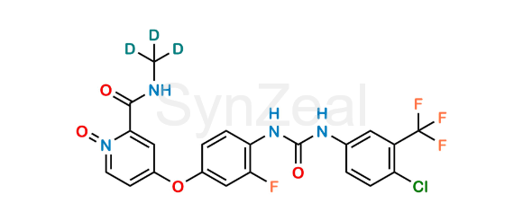 Regorafenib N-Oxide D3 is chemically 4-(4-(3-(4-chloro-3-(trifluoromethyl)phenyl)ureido)-3-fluorophenoxy)-2-((methyl-d3)carbamoyl)pyridine 1-oxide. Regorafenib N-Oxide D3 is supplied with detailed characterization data compliant with regulatory guideline. Regorafenib N-Oxide D3 can be used for the analytical method development, method validation (AMV), Quality Controlled (QC) application for Abbreviated New Drug Application (ANDA) or during commercial production of Regorafenib.