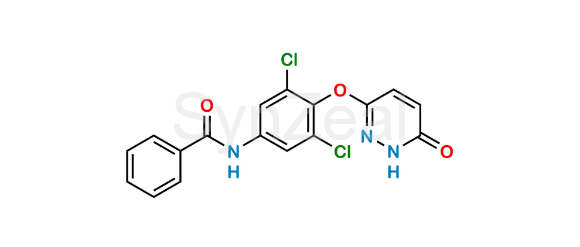 Resmetirom Impurity 11 is chemically N-(3,5-Dichloro-4-((6-oxo-1,6-dihydropyridazin-3-yl)oxy)phenyl)benzamide. Resmetirom Impurity 11 is supplied with detailed characterization data compliant with regulatory guideline. Resmetirom Impurity 11 can be used for the analytical method development, method validation (AMV), Quality Controlled (QC) application for Abbreviated New Drug Application (ANDA) or during commercial production of Resmetirom.