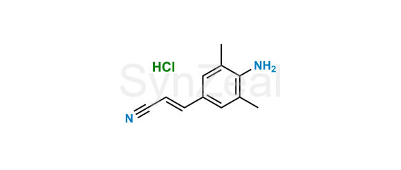 Rilpivirine (E)-Nitrile Impurity (HCl salt) is chemically (E)-3-(4-Amino-3,5-dimethylphenyl)acrylonitrile hydrochloride. Rilpivirine (E)-Nitrile Impurity (HCl salt) is supplied with detailed characterization data compliant with regulatory guideline. Rilpivirine (E)-Nitrile Impurity (HCl salt) can be used for the analytical method development, method validation (AMV), Quality Controlled (QC) application for Abbreviated New Drug Application (ANDA) or during commercial production of Rilpivirine.