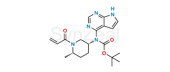 Ritlecitinib Impurity 3 is chemically Tert-butyl ((3R,6S)-1-acryloyl-6-methylpiperidin-3-yl)(7H-pyrrolo[2,3-d]pyrimidin-4-yl)carbamate. Ritlecitinib Impurity 3 is supplied with detailed characterization data compliant with regulatory guideline. Ritlecitinib Impurity 3 can be used for the analytical method development, method validation (AMV), Quality Controlled (QC) application for Abbreviated New Drug Application (ANDA) or during commercial production of Ritlecitinib.