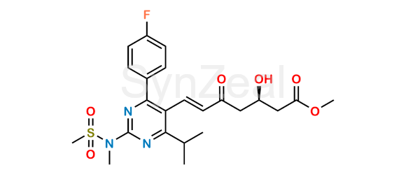 Rosuvastatin 5-Oxo Acid Methyl Ester is chemically (3R,6E)-7-[4-(4-Fluorophenyl)-6-(1-methylethyl)-2-[methyl(methylsulfonyl) amino]-5-pyrimidinyl]-3-hydroxy-5-oxo-6-heptenoic acid methyl ester. Rosuvastatin 5-Oxo Acid Methyl Ester is supplied with detailed characterization data compliant with regulatory guideline. Rosuvastatin 5-Oxo Acid Methyl Ester can be used for the analytical method development, method validation (AMV), Quality Controlled (QC) application for Abbreviated New Drug Application (ANDA) or during commercial production of Rosuvastatin.