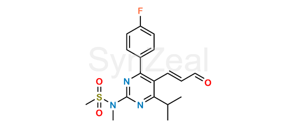 Rosuvastatin Oxopropenyl Impurity is chemically N-[4-(4-Fluorophenyl)-6-(1-methylethyl)-5-[(1E)-3-oxo-1-propenyl]-2-pyrimidinyl]-N-methyl-methanesulfonamide. Rosuvastatin Oxopropenyl Impurity is supplied with detailed characterization data compliant with regulatory guideline. Rosuvastatin Oxopropenyl Impurity can be used for the analytical method development, method validation (AMV), Quality Controlled (QC) application for Abbreviated New Drug Application (ANDA) or during commercial production of Rosuvastatin.