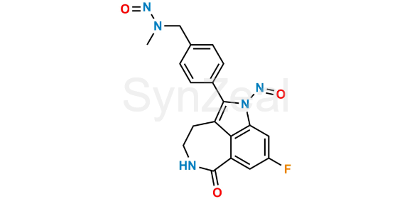 Rucaparib Nitroso Impurity 2 is chemically N-(4-(8-fluoro-6-nitroso-1-oxo-2,3,4,6-tetrahydro-1H-azepino[5,4,3-cd]indol-5-yl)benzyl)-N-methylnitrous amide. Rucaparib Nitroso Impurity 2 is supplied with detailed characterization data compliant with regulatory guideline. Rucaparib Nitroso Impurity 2 can be used for the analytical method development, method validation (AMV), Quality Controlled (QC) application for Abbreviated New Drug Application (ANDA) or during commercial production of Rucaparib.