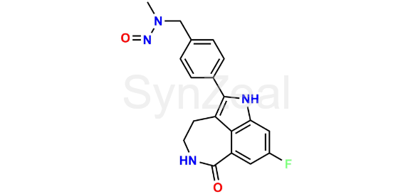 Rucaparib Nitroso Impurity 3 is chemically N-(4-(8-fluoro-1-oxo-2,3,4,6-tetrahydro-1H-azepino[5,4,3-cd]indol-5-yl)benzyl)-N-methylnitrous amide. Rucaparib Nitroso Impurity 3 is supplied with detailed characterization data compliant with regulatory guideline. Rucaparib Nitroso Impurity 3 can be used for the analytical method development, method validation (AMV), Quality Controlled (QC) application for Abbreviated New Drug Application (ANDA) or during commercial production of Rucaparib.