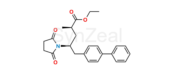 2,5-Dioxopyrrolidine Sacubitril is chemically Ethyl (2R,4S)-5-([1,1'-biphenyl]-4-yl)-4-(2,5-dioxopyrrolidin-1-yl)-2-methylpentanoate. 2,5-Dioxopyrrolidine Sacubitril is supplied with detailed characterization data compliant with regulatory guideline. 2,5-Dioxopyrrolidine Sacubitril can be used for the analytical method development, method validation (AMV), Quality Controlled (QC) application for Abbreviated New Drug Application (ANDA) or during commercial production of Sacubitril.