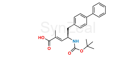 Sacubitril Impurity 22 is chemically (R,E)-5-([1,1'-Biphenyl]-4-yl)-4-((tert-butoxycarbonyl)amino)-2-methylpent-2-enoic acid. Sacubitril Impurity 22 is supplied with detailed characterization data compliant with regulatory guideline. Sacubitril Impurity 22 can be used for the analytical method development, method validation (AMV), Quality Controlled (QC) application for Abbreviated New Drug Application (ANDA) or during commercial production of Sacubitril.