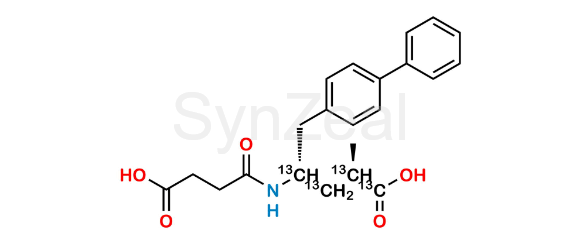 Sacubitrilat-13C4 is chemically (2R,4S)-5-([1,1'-Biphenyl]-4-yl)-4-(3-carboxypropanamido)-2-methylpentanoic-1,2,3,4-13C4 acid. Sacubitrilat-13C4 is supplied with detailed characterization data compliant with regulatory guideline. Sacubitrilat-13C4 can be used for the analytical method development, method validation (AMV), Quality Controlled (QC) application for Abbreviated New Drug Application (ANDA) or during commercial production of Sacubitril.