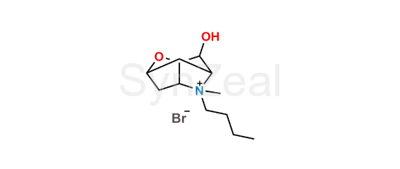 Scopoline Butylbromide is chemically 4-Butyl-6-hydroxy-4-methylhexahydro-2H-2,5-methanofuro[3,2-b]pyrrol-4-ium bromide. Scopoline Butylbromide is supplied with detailed characterization data compliant with regulatory guideline. Scopoline Butylbromide can be used for the analytical method development, method validation (AMV), Quality Controlled (QC) application for Abbreviated New Drug Application (ANDA) or during commercial production of Hyoscine Butylbromide.