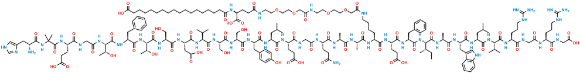 微笑: CC(C)[C@@H](C(N[C@@H](CO)C(N[C@@H](CO)C(N[C@@H](CC1=CC=C(O)C=C1)C(N[C@@H](CC(C)C)C(N[C@@H](CCC(O)=O)C(NCC(N[C@@H](CCC(N)=O)C(N[C@@H](C)C(N[C@@H](C)C(N[C@@H](CCCCNC(COCCOCCNC(COCCOCCNC(CC[C@@H](C(O)=O)NC(CCCCCCCCCCCCCCCCC(O)=O)=O)=O)=O)=O)C(N[C@@H](CCC(O)=O)C(N[C@@H](CC2=CC=CC=C2)C(N[C@@H]([C@@H](C)CC)C(N[C@@H](C)C(N[C@@H](CC3=CNC4=C3C=CC=C4)C(N[C@@H](CC(C)C)C(N[C@@H](C(C)C)C(N[C@@H](CCCNC(N)=N)C(NCC(N[C@@H](CCCNC(N)=N)C(NCC(O)=O)=O)=O)=O)=O)=O)=O)=O)=O)=O)=O)=O)=O)=O)=O)=O)=O)=O)=O)=O)=O)=O)NC([C@H](CC(O)=O)NC([C@H](CO)NC([C@H]([C@H](O)C)NC([C@@H](NC([C@H]([C@@H](C)O)NC(CNC([C@H](CCC(O)=O)NC(C(C)(C)NC([C@H](N)CC5=CNC=N5)=O)=O)=O)=O)=O)CC6=CC=CC=C6)=O)=O)=O)=O