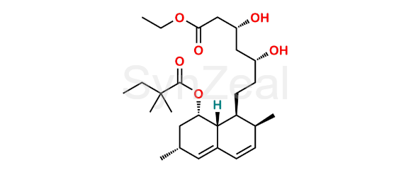 Simvastatin EP Impurity M is chemically Ethyl (3R,5R)-7-[(1S,2S,6R,8S,8aR)-8-[(2,2-dimethylbutanoyl)oxy]-2,6-dimethyl-1,2,6,7,8,8a-hexahydronaphthalen-1-yl]-3,5-dihydroxyheptanoate,(as per EP). It is also known as Simvastatin Acid Ethyl Ester. Simvastatin EP Impurity M is supplied with detailed characterization data compliant with regulatory guideline. Simvastatin EP Impurity M can be used for the analytical method development, method validation (AMV), Quality Controlled (QC) application for Abbreviated New Drug Application (ANDA) or during commercial production of Simvastatin.