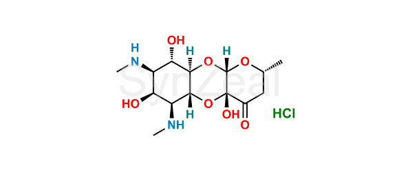 Spectinomycin Hydrochloride is chemically (2R,4aR,5aR,6S,7S,8R,9S,9aR,10aS)4a,7,9-trihydroxy-2-methyl-6,8-bis(methylamino)decahydro-4H-pyrano[2,3-b][1,4]benzodioxin-4-one hydrochloride (as per EP) ; 4H-Pyrano[2,3-b][1,4]benzodioxin-4-one, decahydro-4a,7,9-trihydroxy-2-methyl-6,8-bis(methylamino)- hydrochloride (as per USP). Spectinomycin Hydrochloride is supplied with detailed characterization data compliant with regulatory guideline. Spectinomycin Hydrochloride can be used for the analytical method development, method validation (AMV), Quality Controlled (QC) application for Abbreviated New Drug Application (ANDA) or during commercial production of Spectinomycin.