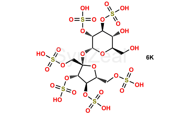 Sucrose Hexasulfate Potassium salt is chemically (2S,3S,4R,5R)-2-(((2R,3R,4S,5R,6R)-5-hydroxy-6-(hydroxymethyl)-3,4-bis(sulfooxy)tetrahydro-2H-pyran-2-yl)oxy)-2,5-bis((sulfooxy)methyl)tetrahydrofuran-3,4-diyl bis(hydrogen sulfate) hexapotassium salt. Sucrose Hexasulfate Potassium salt is supplied with detailed characterization data compliant with regulatory guideline. Sucrose Hexasulfate Potassium salt can be used for the analytical method development, method validation (AMV), Quality Controlled (QC) application for Abbreviated New Drug Application (ANDA) or during commercial production of Miscellaneous.