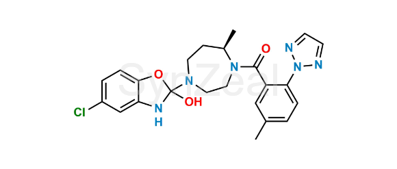Suvorexant Impurity 13 is chemically ((7R)-4-(5-Chloro-2-hydroxy-2,3-dihydrobenzo[d]oxazol-2-yl)-7-methyl-1,4-diazepan-1-yl)(5-methyl-2-(2H-1,2,3-triazol-2-yl)phenyl)methanone. Suvorexant Impurity 13 is supplied with detailed characterization data compliant with regulatory guideline. Suvorexant Impurity 13 can be used for the analytical method development, method validation (AMV), Quality Controlled (QC) application for Abbreviated New Drug Application (ANDA) or during commercial production of Suvorexant.