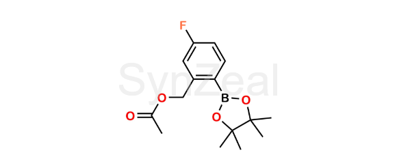 Tavaborole Oxaborolane Analog is chemically 5-Fluoro-2-(4,4,5,5-tetramethyl-1,3,2-dioxaborolan-2-yl)benzyl acetate. Tavaborole Oxaborolane Analog is supplied with detailed characterization data compliant with regulatory guideline. Tavaborole Oxaborolane Analog can be used for the analytical method development, method validation (AMV), Quality Controlled (QC) application for Abbreviated New Drug Application (ANDA) or during commercial production of Tavaborole.