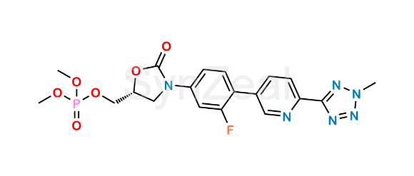 Tedizolid Dimethoxy Impurity is chemically (R)-(3-(3-Fluoro-4-(6-(2-methyl-2H-tetrazol-5-yl)pyridin-3-yl)phenyl)-2-oxooxazolidin-5-yl)methyl dimethyl phosphate. Tedizolid Dimethoxy Impurity is supplied with detailed characterization data compliant with regulatory guideline. Tedizolid Dimethoxy Impurity can be used for the analytical method development, method validation (AMV), Quality Controlled (QC) application for Abbreviated New Drug Application (ANDA) or during commercial production of Tedizolid.