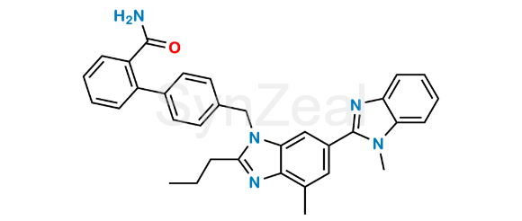 化学名称: 4′-[[4-methyl-6-(1-methyl-1H-benzimidazol-2-yl)-2-propyl-1H-benzimidazol-1-yl]methyl][1,1′-biphenyl]-2-carboxamide (as per EP) ; 4′-[(1,7′-Dimethyl-2′-propyl-1H,3′H-2,5′-bibenzo[d]imidazol-3′-yl)methyl]biphenyl-2-carboxamide (as per USP)