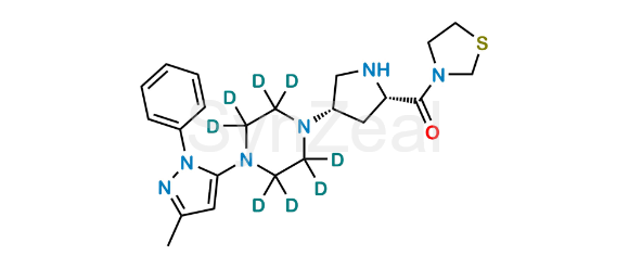 Teneligliptin-d8 is chemically [(2S,4S)-4-[4-(3-Methyl-1-phenyl-1H-pyrazol-5-yl)-1-piperazinyl]-2-pyrrolidinyl]-3-thiazolidinylmethanone-d8; 3-[[(2S,4S)-4-[4-(3-Methyl-1-phenyl-1H-pyrazol-5-yl)-1-piperazinyl]-2-pyrrolidinyl]carbonyl]thiazolidine-d8; Tenelia-d8. Teneligliptin-d8 is supplied with detailed characterization data compliant with regulatory guideline. Teneligliptin-d8 can be used for the analytical method development, method validation (AMV), Quality Controlled (QC) application for Abbreviated New Drug Application (ANDA) or during commercial production of Teneligliptin.