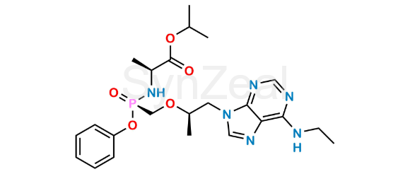 Tenofovir Impurity 107 is chemically Isopropyl ((S)-((((R)-1-(6-(ethylamino)-9H-purin-9-yl)propan-2-yl)oxy)methyl)(phenoxy)phosphoryl)-L-alaninate. Tenofovir Impurity 107 is supplied with detailed characterization data compliant with regulatory guideline. Tenofovir Impurity 107 can be used for the analytical method development, method validation (AMV), Quality Controlled (QC) application for Abbreviated New Drug Application (ANDA) or during commercial production of Tenofovir.