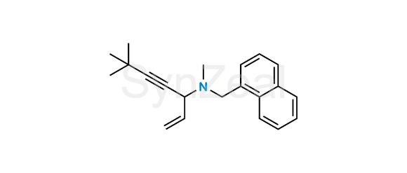 Terbinafine Impurity 24 is chemically N,6,6-Trimethyl-N-(naphthalen-1-ylmethyl)hept-1-en-4-yn-3-amine. Terbinafine Impurity 24 is supplied with detailed characterization data compliant with regulatory guideline. Terbinafine Impurity 24 can be used for the analytical method development, method validation (AMV), Quality Controlled (QC) application for Abbreviated New Drug Application (ANDA) or during commercial production of Terbinafine.