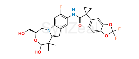 Tezacaftor Metabolite is chemically 1-(2,2-Difluorobenzo[d][1,3]dioxol-5-yl)-N-((4R)-8-fluoro-2-hydroxy-4-(hydroxymethyl)-1,1-dimethyl-1,2,4,5-tetrahydro-[1,4]oxazepino[4,5-a]indol-9-yl)cyclopropane-1-carboxamide. Tezacaftor Metabolite is supplied with detailed characterization data compliant with regulatory guideline. Tezacaftor Metabolite can be used for the analytical method development, method validation (AMV), Quality Controlled (QC) application for Abbreviated New Drug Application (ANDA) or during commercial production of Tezacaftor.