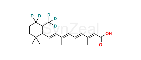 Tretinoin D5 is chemically (2E,4E,6E,8E)-9-(6,6-dimethyl-2-(methyl-d3)cyclohex-1-en-1-yl-3,3-d2)-3,7-dimethylnona-2,4,6,8-tetraenoic acid. Tretinoin D5 is supplied with detailed characterization data compliant with regulatory guideline. Tretinoin D5 can be used for the analytical method development, method validation (AMV), Quality Controlled (QC) application for Abbreviated New Drug Application (ANDA) or during commercial production of Tretinoin.