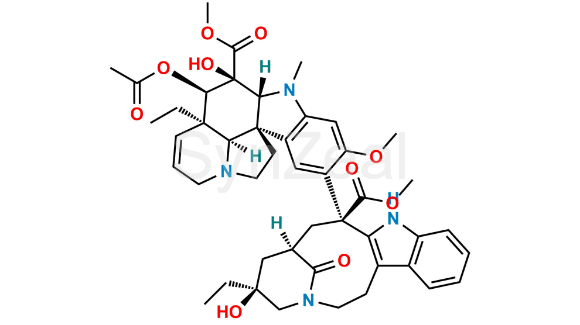 Vinblastine Impurity D is chemically Methyl (3aR,3a1R,4R,5S,5aR,10bR)-4-acetoxy-3a-ethyl-9-((5S,7R,9S)-5-ethyl-5-hydroxy-9-(methoxycarbonyl)-15-oxo-1,4,5,6,7,8,9,10-octahydro-2H-3,7-methano[1]azacycloundecino[5,4-b]indol-9-yl)-5-hydroxy-8-methoxy-6-methyl-3a,3a1,4,5,5a,6,11,12-octahydro-1H-indolizino[8,1-cd]carbazole-5-carboxylate. Vinblastine Impurity D is supplied with detailed characterization data compliant with regulatory guideline. Vinblastine Impurity D can be used for the analytical method development, method validation (AMV), Quality Controlled (QC) application for Abbreviated New Drug Application (ANDA) or during commercial production of Vinblastine Sulfate.
