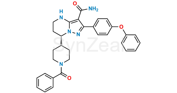 Zanubrutinib Benzoyl Amide Impurity is chemically (S)-7-(1-benzoylpiperidin-4-yl)-2-(4-phenoxyphenyl)-4,5,6,7-tetrahydropyrazolo[1,5-a]pyrimidine-3-carboxamide. Zanubrutinib Benzoyl Amide Impurity is supplied with detailed characterization data compliant with regulatory guideline. Zanubrutinib Benzoyl Amide Impurity can be used for the analytical method development, method validation (AMV), Quality Controlled (QC) application for Abbreviated New Drug Application (ANDA) or during commercial production of Zanubrutinib.