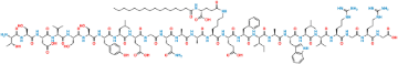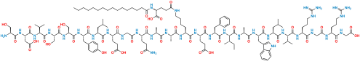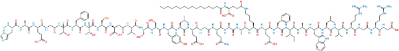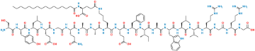 Smiles: O=C(O)CNC([C@H](CCCNC(N)=N)NC(CNC([C@H](CCCNC(N)=N)NC([C@H](C(C)C)NC([C@H](CC(C)C)NC([C@H](CC1=CNC2=C1C=CC=C2)NC([C@H](C)NC([C@H]([C@@H](C)CC)NC([C@H](CC3=CC=CC=C3)NC([C@H](CCC(O)=O)NC([C@H](CCCCNC(CC[C@@H](C(O)=O)NC(CCCCCCCCCCCCCCC)=O)=O)NC([C@H](C)NC([C@H](C)NC([C@H](CCC(N)=O)NC(CNC([C@H](CCC(O)=O)NC([C@H](CC(C)C)NC([C@H](CC4=CC=C(O)C=C4)NC([C@H](CO)NC([C@H](CO)NC([C@H](C(C)C)NC(C[C@@H](C(O)=O)NC([C@H](CO)NC([C@@]([C@H](O)C)([H])NC([C@@H](NC([C@@]([C@H](O)C)([H])NC(CNC([C@H](CCC(O)=O)NC([C@@H](NC([C@@H](N[H])CC5=CN=CN5)=O)C)=O)=O)=O)=O)CC6=CC=CC=C6)=O)=O)=O)=O)=O)=O)=O)=O)=O)=O)=O)=O)=O)=O)=O)=O)=O)=O)=O)=O)=O)=O)=O)=O)=O