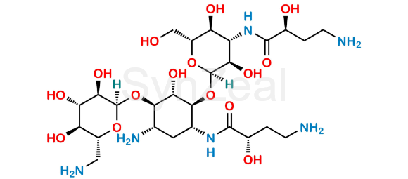 Chemical Name: (S)-4-Amino-N-((1R,2S,3S,4R,5S)-5-amino-2-(((2S,3R,4S,5S,6R)-4-((S)-4-amino-2-hydroxybutanamido)-3,5-dihydroxy-6-(hydroxymethyl)tetrahydro-2H-pyran-2-yl)oxy)-4-(((2R,3R,4S,5S,6R)-6-(aminomethyl)-3,4,5-trihydroxytetrahydro-2H-pyran-2-yl)oxy)-3-hydroxycyclohexyl)-2-hydroxybutanamide