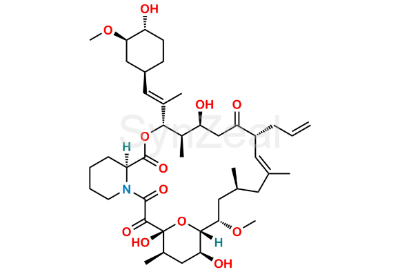 13-O-Desmethyl tacrolimus is chemically . 13-O-Desmethyl tacrolimus is supplied with detailed characterization data compliant with regulatory guideline. 13-O-Desmethyl tacrolimus can be used for the analytical method development, method validation (AMV), Quality Controlled (QC) application for Abbreviated New Drug Application (ANDA) or during commercial production of Tacrolimus.