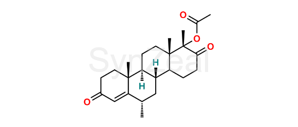 (17a-alfa)-Hydroxy-6Alfa,17a-Dimethyl-D-Homoandrost-4-Ene-3,17-Dione 17-Acetate is chemically (1S,4bR,6S,10aR,10bS,12aS)-1,6,10a,12a-tetramethyl-2,8-dioxo-1,2,3,4,4a,4b,5,6,8,9,10,10a,10b,11,12,12a-hexadecahydrochrysen-1-yl acetate. (17a-alfa)-Hydroxy-6Alfa,17a-Dimethyl-D-Homoandrost-4-Ene-3,17-Dione 17-Acetate is supplied with detailed characterization data compliant with regulatory guideline. (17a-alfa)-Hydroxy-6Alfa,17a-Dimethyl-D-Homoandrost-4-Ene-3,17-Dione 17-Acetate can be used for the analytical method development, method validation (AMV), Quality Controlled (QC) application for Abbreviated New Drug Application (ANDA) or during commercial production of Progesterone.