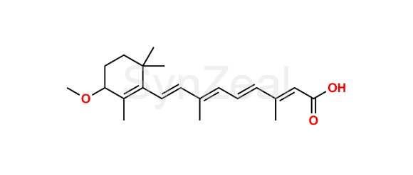 4-Methoxy Retinoic Acid is chemically (2E,4E,6E,8E)-9-(3-Methoxy-2,6,6-trimethylcyclohex-1-en-1-yl)-3,7-dimethylnona-2,4,6,8-tetraenoic acid. It is also known as rac-4-Methoxytretinoin ; . 4-Methoxy Retinoic Acid is supplied with detailed characterization data compliant with regulatory guideline. 4-Methoxy Retinoic Acid can be used for the analytical method development, method validation (AMV), Quality Controlled (QC) application for Abbreviated New Drug Application (ANDA) or during commercial production of Isotretinoin.